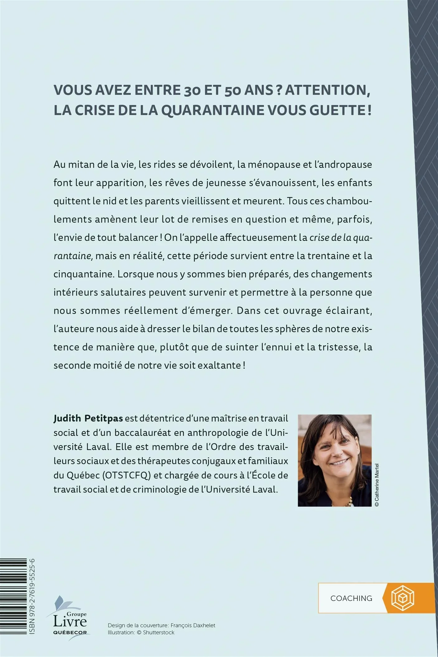 Lorsque nous y sommes bien préparés, des changements intérieurs salutaires peuvent survenir et permettre à la personne que nous sommes réellement d’émerger. Dans cet ouvrage éclairant, l’auteure nous aide à dresser le bilan de toutes les sphères de notre existence de manière que, plutôt que de suinter l’ennui et la tristesse, la seconde moitié de notre vie soit exaltante!